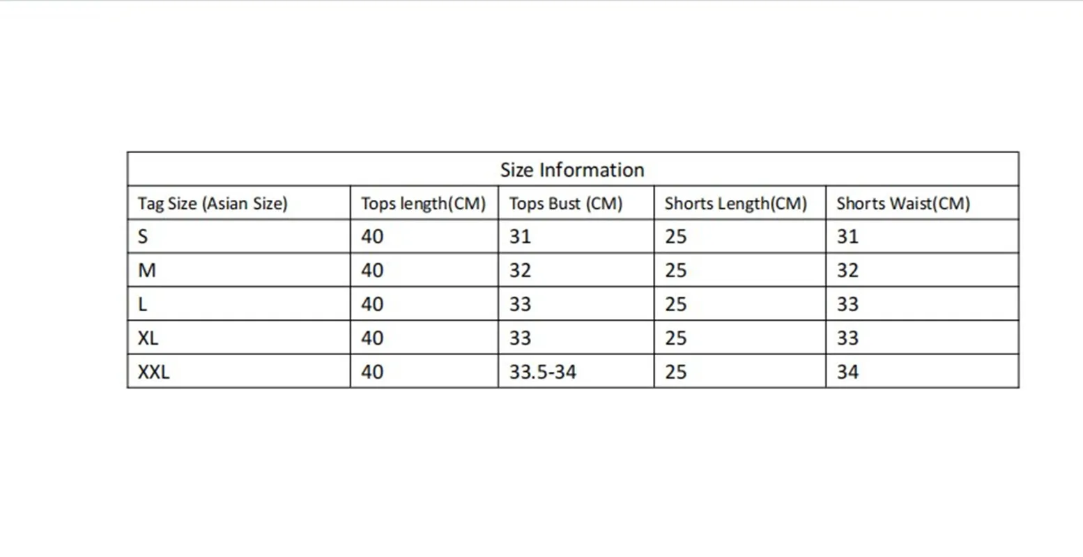 Conteúdo do pacote: 1 x top e 1 x shorts